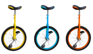 Wie der Name sagt, besitzt das Einrad nur ein Rad. Einräder gibt es in verschiedenen Größen, von Miniaturrädern mit einer Radgröße von 12 Zoll bis zu großen Einrädern mit einem Raddurchmesser von 50 Zoll (1 Zoll = 2,54 cm).