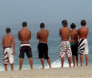 Etwas später kamen dann die Badeshorts, so wie wir sie heute kennen, auf den Markt. Sie stammen aus der Surfkultur. Aber auch enganliegenden Badehosen werden nach wie vor getragen.