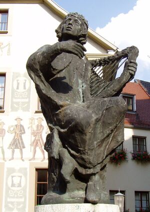 Statue eines fahrenden Sängers mit Harfe - Seeteufel (Sigismund von Dobschütz) commons.wikimedia.org, CC BY-SA 3.0