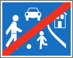 Ist das Hinweiszeichen mit einer roten Linie schräg durchgestrichen, wird damit das Ende zB einer Fußgängerzone oder eine Wohnstraße angegeben.