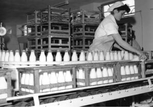 Milchabfüllung in Flaschen (1956) - Steiner Egon commons.wikimedia.org, Standardurheberrechtsschutz