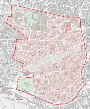 Zu den wichtigsten Gebäuden zählen unter anderem die Alte Schieberkammer und der Westbahnhof.