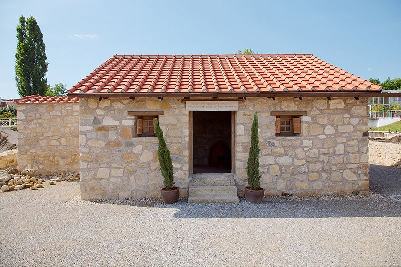 | Beschreibung | Wieder aufgebautes Haus des Tuchhändlers Lucius in Carnuntum. Straßenseite des Gebäudes |