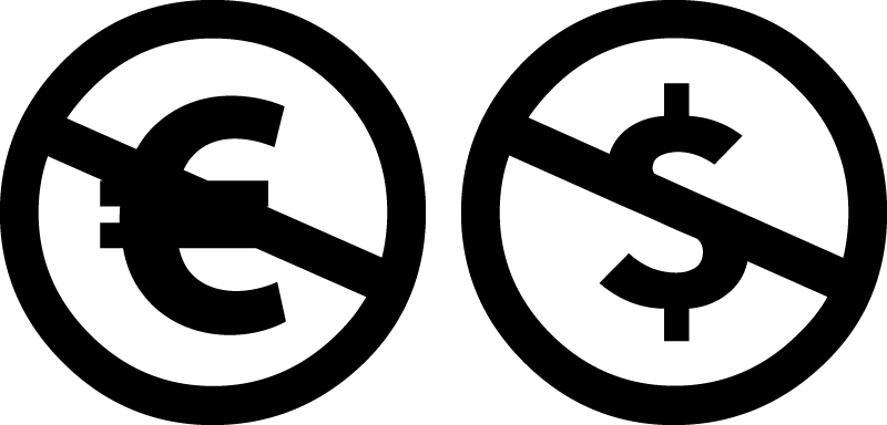 Beschreibung Nebeneinander: Creative Commons Symbole für Nicht kommerzielle Nutzung mit Euro und Dollar Zeichen