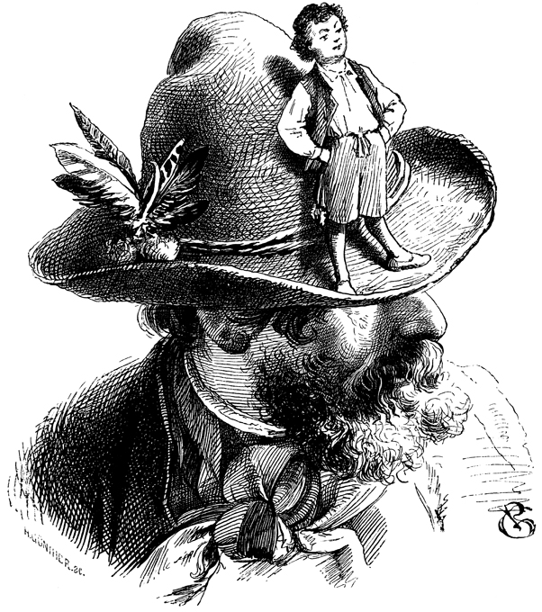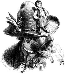 | Beschreibung | Daumesdick steht auf der Hutkrempe. |