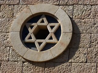 Beschreibung Davidstern - Symbol des Judentums auf einer Synagoge