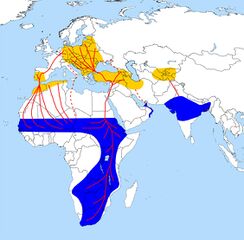 | Beschreibung | Die gelben Gebiete kennzeichnen die Heimat. Die blauen Gebiete sind das Überwinterungsquartier. Die roten Linien kennzeichnen die Flugrouten. |
