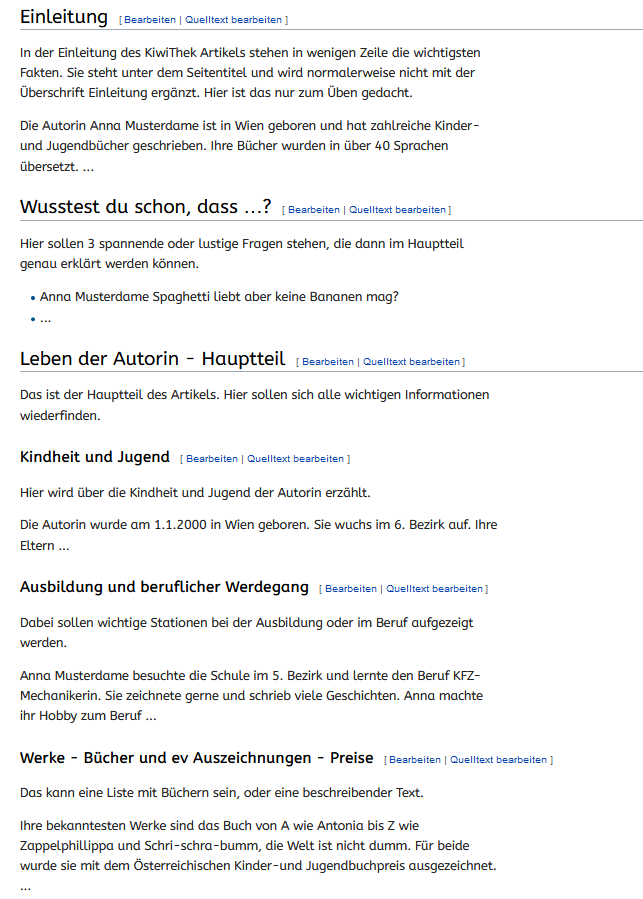 | Beschreibung | Beispiel für die Gliederung eines KiwiThek Artikels |