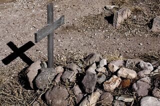 | Beschreibung | Mit Steinen bedecktes Grab mit einem Holzkreuz |