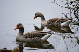 | Originaltitel | Greylag geese (Anser anser) in "Töneböns Teiche" nature reserve, Hameln, Lower Saxony, Germany