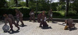 | Beschreibung | Skulpturengruppe Hans im Glück von Tor Michael Sönksen im Burghof von Burg Wissem in Troisdorf (1990) |