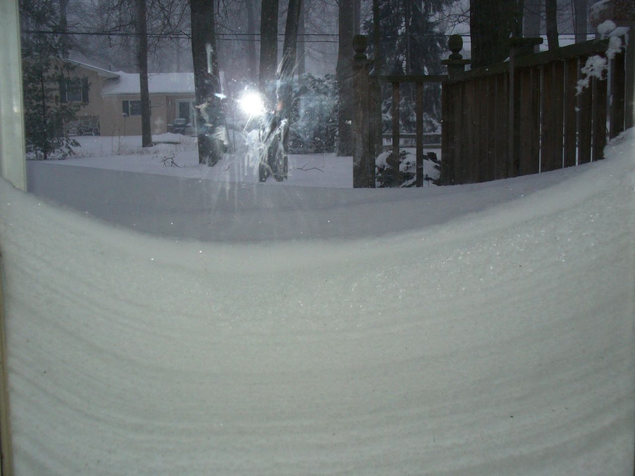 | Beschreibung | Viele Schichten Schnee sind an die Terrassentür geweht worden. |
