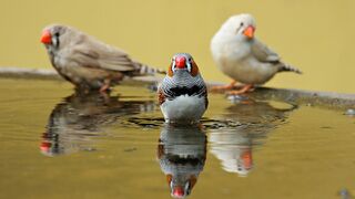 | Beschreibung | Zebrafinken-Schwarm in einer Wassertränke |