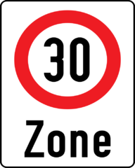 | Beschreibung | Dieses Verkehrszeichen ist ein Vorschriftszeichen und zeigt eine Zonenbeschränkung mit einer Geschwindigkeitsbeschränkung. |