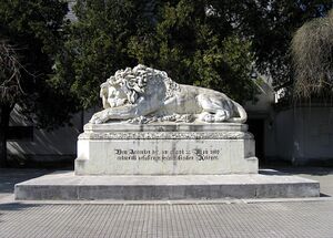 Das Denkmal wurde von Anton Domninik Fernkorn erbaut und soll an die Opfer der Schlacht bei Aspern und Essling im Jahr 1809 erinnern.