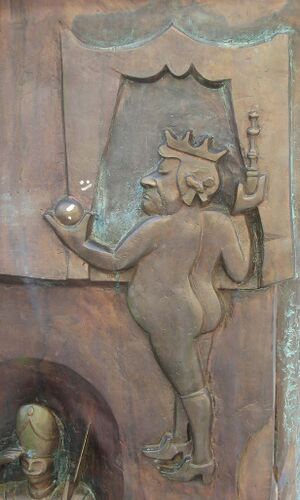"Aber er hat ja gar nichts an!" rief zuletzt das ganze Volk. Das ergriff den Kaiser, denn das Volk schien ihm recht zu haben, aber er dachte bei sich: "Nun muss ich aushalten." Und die Kammerherren gingen und trugen die Schleppe, die gar nicht da war.