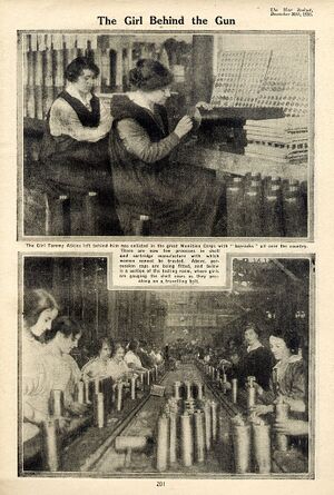 Dieses Bild zeigt Frauen als Arbeiterinnen in englischen Munitionsfabriken während des 1. Weltkriegs. - The War Budget commons.wikimedia.org, CC0 1.0