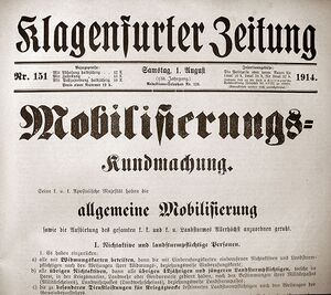 Kriegs-Kundgebung, Klagenfurter Zeitung 1914 - Klagenfurter Zeitung, Nr. 151, 1. August 1914, (Seite 1) commons.wikimedia.org, CC0 1.0