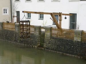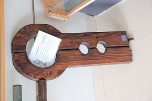 • Halsgeige und Schandmaske: Streitsüchtige Frauen wurden in eine sogenannte Halsgeige (Fischers Geige, Zankgeige) gesperrt. Beim Strafvollzug wurde auch eine Maske verwendet, auf der das Verbrechen des oder der Verurteilten dargestellt wurde.