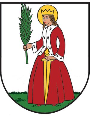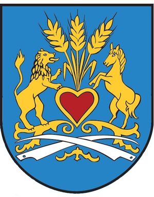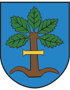 Den Boden bilden lodernde Flammen, über diesen zeigt das Wappen die Jahreszahl 1683. Es wächst ein Zweig mit vier Haselnüssen und drei Blättern hervor. Das weißt auf das Ende der 2. Türkenbelagerung hin.