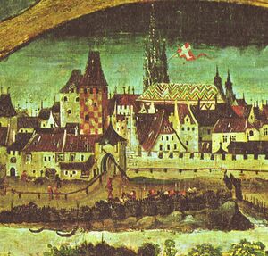 In der Nähe des Rotenturmtores in der Adlergasse stand vor ungefähr 400 Jahren der Gasthof „Zum roten Adler“. Der Wirt, Hans Wangler, war in ganz Wien für seine gute Küche, den köstlichen Wein und die sauberen Zimmer berühmt. Er selbst war ein geiziger Mann, der am liebsten abends sein Geld zählte und die anderen arbeiten ließ. Das konnte er auch, denn seine Frau bereitete alle Speisen in der Küche zu, sein Sohn Josef übernahm die Arbeit im Weinkeller und Marie war Stubenmädchen und Kellnerin in einem. Marie war eine verarmte Waise, die entfernt mit der Wirtsfamilie verwandt war und daher bei der Familie Wangler wohnte. Hans Wangler plante, seinen Sohn zu verheiraten, und zwar wollte er, dass eine angemessene Mitgift ins Haus kommt. Er dachte dabei an eine Hochzeit mit der reichen Wirtstochter aus dem Gasthaus „Zur grünen Weinrebe“. Sie war sicher eine der reichsten und begehrtesten jungen Frauen Wiens. Josef aber hatte andere Pläne. Lange schon verstand er sich sehr gut mit Marie. Immer, wenn sie ein bisschen Freizeit hatten, verbrachten sie diese miteinander. Eigentlich wollte Josef nur noch auf einen günstigen Augenblick warten, um seinem Vater zu sagen, dass er die Marie heiraten wolle.