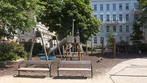 Im Hamerlingpark gibt es einen Spielplatz sowie Möglichkeiten Fußball oder Tischtennis zu spielen.