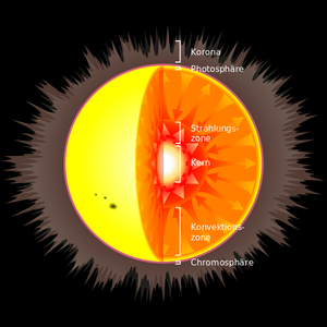 Die Oberflächenschicht der Sonne, deren Licht uns erreicht, heißt Photosphäre. Sie ist zirka 400 km dick und ihre Temperatur beträgt „nur“ 5 500 (fünftausendfünfhundert) Grad Celsius.
