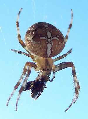 Spinnen fressen hauptsächlich Insekten und andere Spinnen. Durch ihre hohe Bevölkerungsdichte sind sie die wichtigsten Insektenvertilger die wir haben.