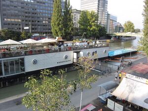 Seit Juli 2006 befindet sich am Donaukanal zwischen der Schwedenbrücke und der Urania das Badeschiff.