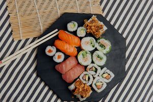Die Hauptzutat des Sushis ist Reis. Reis ist in Japan die Hauptspeise und gehört eigentlich zu jedem Essen. Angebaut, wird der Reis ebenfalls in ostasiatischen Ländern, wie z. B. Korea, Indien und natürlich Japan. Aber auch in Afrika wird Reis angebaut. Für Sushi nimmt man speziellen Sushireis. Gefüllt werden die Häppchen meist mit rohem Fisch. Für den Fisch wird in der Regel Makrele, Lachs oder auch Thunfisch verwendet. Damit sind Reis und Fisch die typischsten Essenstraditionen Japans. Außerdem wird Sushi meistens entweder mit japanischen Algenblättern namens Nori-Blätter oder mit Chiasamen am Rand gewickelt bzw. bestreut. Übrigens: Sushi gibt es auch mit Gemüse wie z.B. Gurke, Avocado oder Paprika gefüllt.