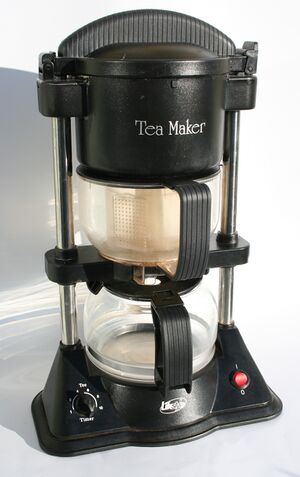 Nach Ablauf der Zeit öffnet sich ein Ventil, der fertige Tee rinnt in die untere Kanne.