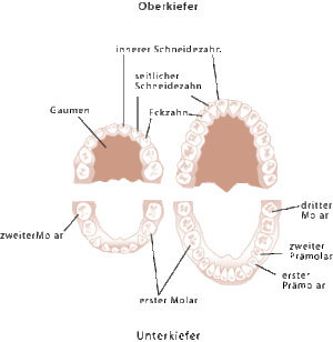 Dein Milchgebiss besteht aus 20 Zähnen - ein Erwachsenengebiss aus 32 Zähnen. - Maksim commons.wikimedia.org, CC BY-SA 3.0