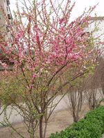 Ein Pfirsichbaum kann bis zu acht Meter hoch werden, aber auch deutlich kleiner bleiben. Die Krone des Baumes ist buschig und im Verhältnis zur Stammhöhe eher niedrig.