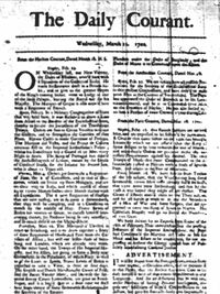 Ab dem Jahr 1702 gab es in London den „Daily Courant“. Diese Zeitung wurde gedruckt, um die Veranstaltungen in der großen Stadt bekannt zu geben. Sie war also so etwas wie ein Veranstaltungskalender.