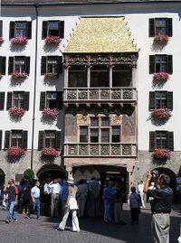 Das goldenen Dachl ist das Wahrzeichen der Stadt. Es gehört zu einem Prunkerker (ein besonders schöner Vorbau an der Fassade des Hauses). Von diesem Erker aus konnten die Angehörigen des Hofes die Turniere beobachten, die am Platz darunter abgehalten wurden. Das Dach dieses Erkers ist mit feuervergoldeten kupfernen Schindeln gedeckt und erhielt daher seinen Namen.