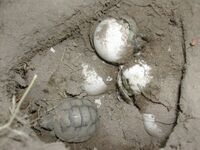 Die Anzahl der gelegten Eier ist je nach Art sehr unterschiedlich. So legt die kleinste Landschildkrötenart beispielsweise nur ein Ei und Meeresschildkröten bis zu 200 Eier. Ebenfalls sehr unterschiedlich ist der Zeitraum, bis die kleinen Schildkröten schlüpfen. Manche Arten schlüpfen bereits nach 50 Tagen, andere erst nach 250 Tagen.