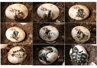 Hat es die kleine Schildkröte geschafft, ein kleines Loch in die Eierschale zu bohren, so streckt sich der bis dahin noch gefaltete Bauchpanzer langsam auf und sprengt die restliche Eierschale weg.