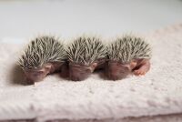 Wenn die Kleinen geboren werden, haben sie zwar schon um die 100 Stacheln, aber noch kein Fell. Außerdem sind ihre Augen noch geschlossen und sie können noch nicht hören.