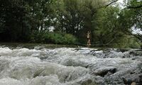 Errätst du worüber die Line hier gespannt wird? Richtig! Bei Waterlines wird das Schlauchband über Wasser gespannt. Hier zu balancieren ist deshalb schwierig weil sich das Wasser bewegt und sich der Waterliner nicht auf einen fixen Punkt konzentrieren kann.