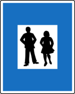 Ist das Hinweiszeichen mit einer '''roten Linie''' schräg '''durchgestrichen''', wird damit das '''Ende''' zB einer Fußgängerzone oder eine Wohnstraße angegeben. | Ist das Hinweiszeichen mit einer '''roten Linie''' schräg '''durchgestrichen''', wird damit das '''Ende''' zB einer Fußgängerzone oder eine Wohnstraße angegeben. | ||