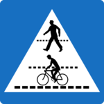 Diese Zeichen kennzeichnen einen Fußgängerübergang und/oder Radfahrerüberfahrt ohne Ampel.
