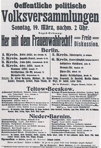 Plakat: Volksversammlung für das Frauenwahlrecht