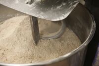 Das Mehl ist zu sieben, abzuwägen und mit Wasser zu vermischen.
