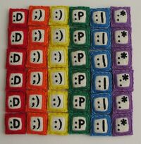 Mit Hilfe von Satz- und Sonderzeichen auf der Tastatur eines Computers lassen sich Gesichter schaffen, die ein Smiley nachbilden. Diese werden auch Emoticons genannt.
