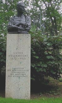 Guido Holzknecht war ein Pionier der Radiolgoie und Gründer des Zentral-Röntgen-Laboratoriums des Allgemeinen Krankenhauses im Alsergrund. Wie viele andere der ersten Röntgenforscher wurde Holzknecht ein Opfer seines Berufs. Man wusste damals nämlich noch nicht, ab welcher Dosis die Röntgenstrahlen Schaden anrichten würden. So starb Holzknecht 1931 an den Folgen eines Strahlenschadens.