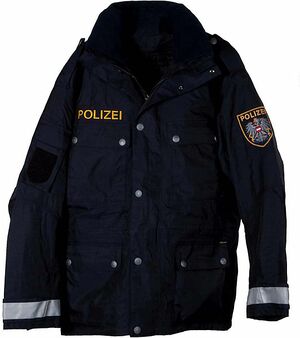| − | [[Datei:Bundespolizei | + | [[Datei:Bundespolizei Mehrzweckjacke vorne.jpg|thumb|300px|right|{{ImageCaption|Titel=Jacke der österreichischen Bundespolizei|Urheber= Austrian Government/Ministry of Interior|Quelle={{ImageMetaSource|Quelle=https://commons.wikimedia.org/wiki/File:Bundespolizei_AT_Mehrzweckjacke.jpg|Linktext=}}|Lizenz={{ImageMetaLicense|URL=https://creativecommons.org/publicdomain/zero/1.0/deed.de|Lizenz=CC0 1.0}}}}]] |
