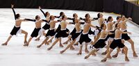 Ein Team im Synchroneiskunstlaufen besteht aus 16 bis 20 Läuferinnen und Läufern. Im Wettbewerb müssen Kurzprogramm und Kür gezeigt werden. Wie im Einzel- und Paarlauf sind im Kurzprogramm die Elemente vorgeschrieben. Die Kür bietet den Teams mehr Freiheiten zur Gestaltung.