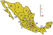 | 13:18, 25. Mai 2011 | Mexiko Bundesstaaten.jpg (Datei) | 153 KB | 1. Aguascalientes 2. Baja California 3. Baja California Sur 4. Campeche 5. Coahuila 6. Colima 7. Chiapas 8. Chihuahua 9. Distrito Federal 10. Durango 11. Guanajuato 12. Guerrero 13. Hidalgo 14. Jalisco 15. México 16. Michoacán 17. Morelos 18. Nayarit 19 | 1 | |