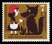 11:43, 11. Okt. 2016 Briefmarke Rotkäppchen.jpg (Datei) 126 KB {{ImageMetaTable|Beschreibung=Rotkäppchen an der Seite des "bösen" Wolfes (deutsche Briefmarke)|Urheber=scanned by NobbiP|Herausgeber=commons.wikimedia.org|Quelle={{ImageMetaSource|Quelle=https://commons.wikimedia.org/wiki/File:DBP_1960_340_Wohlfahrt… 1