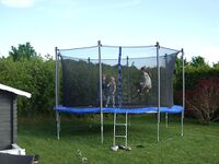 Ein Gartentrampolin ist eigentlich ein Riesentrampolin, das sogar das ganze Jahr über verwendet werden kann. Die meist gekaufte Größe eines Gartentrampolins ist 4,3 Meter im Durchmesser. Oft haben diese Trampoline rundherum ein hohes Netz gespannt, damit niemand beim Springen unabsichtlich runter fallen kann.